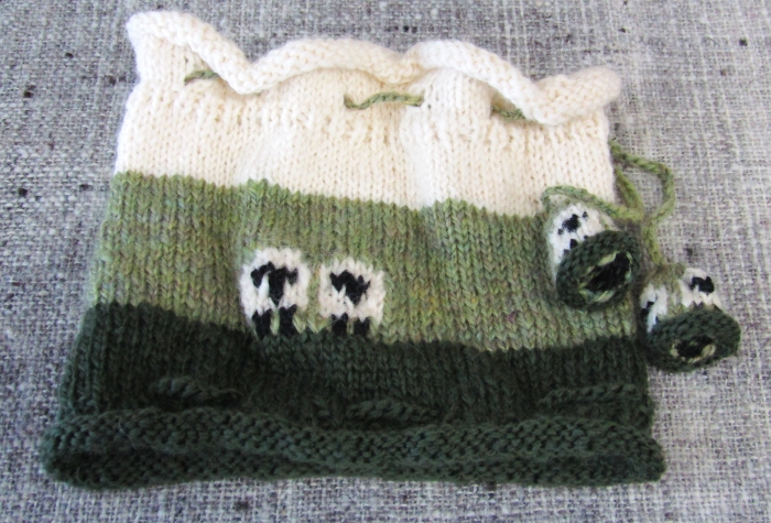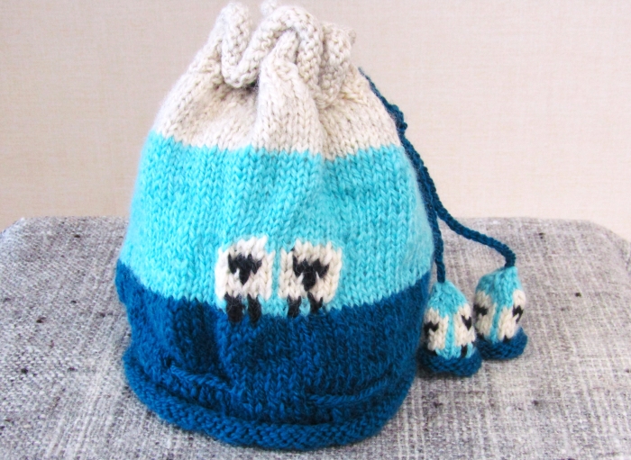 3049-3 手紡ぎ・手編み 羊柄ネック帽子(シェット種3色活用)